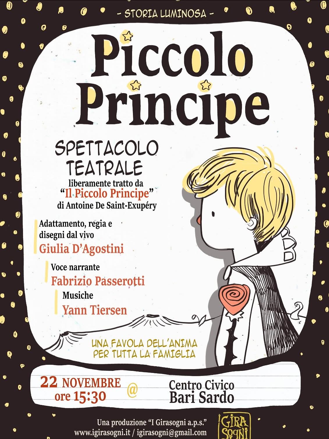 Prossimo appuntamento a Bari Sardo per il progetto “Ogliastra pagina su pagina, incontri con la scrittura e il teatro”. Sabato 22 alle 15:30 presso il Centro Civico, spettacolo teatrale “Il piccolo principe “.