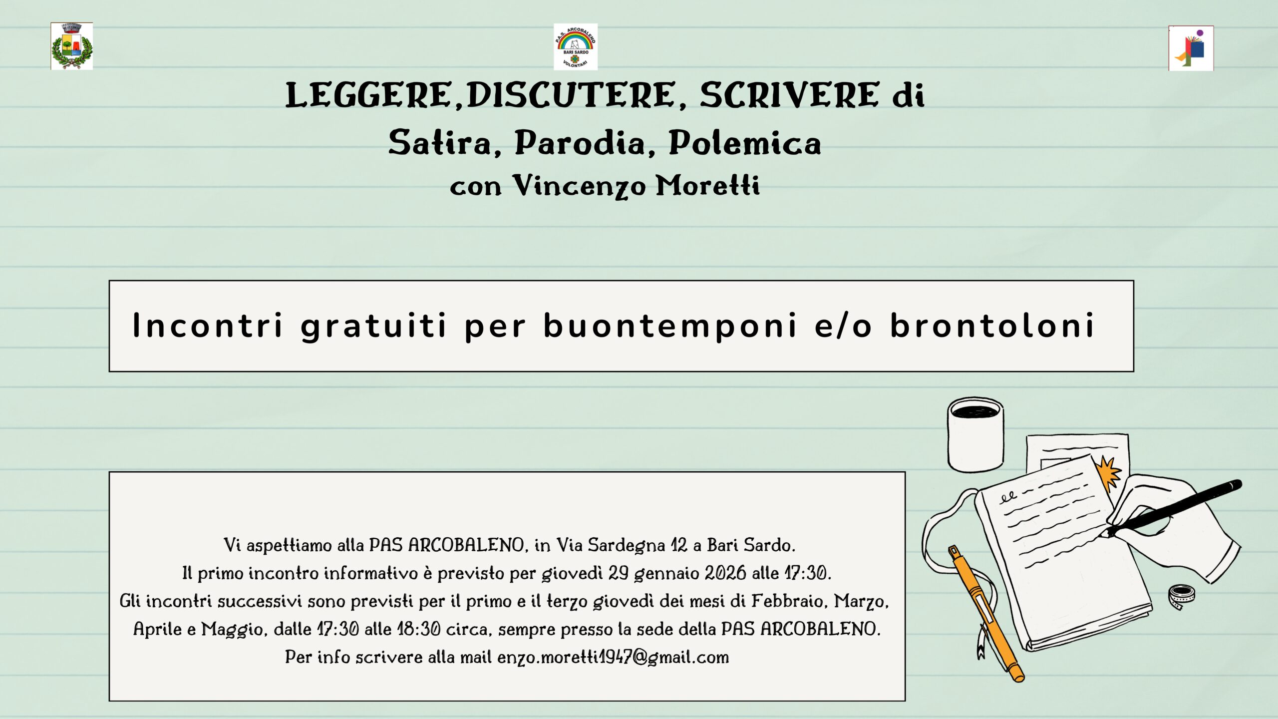 LEGGERE,DISCUTERE, SCRIVERE di Satira, Parodia, Polemica con Vincenzo Moretti. Primo incontro informativo giovedì 29 gennaio 2026 ore 17:30.