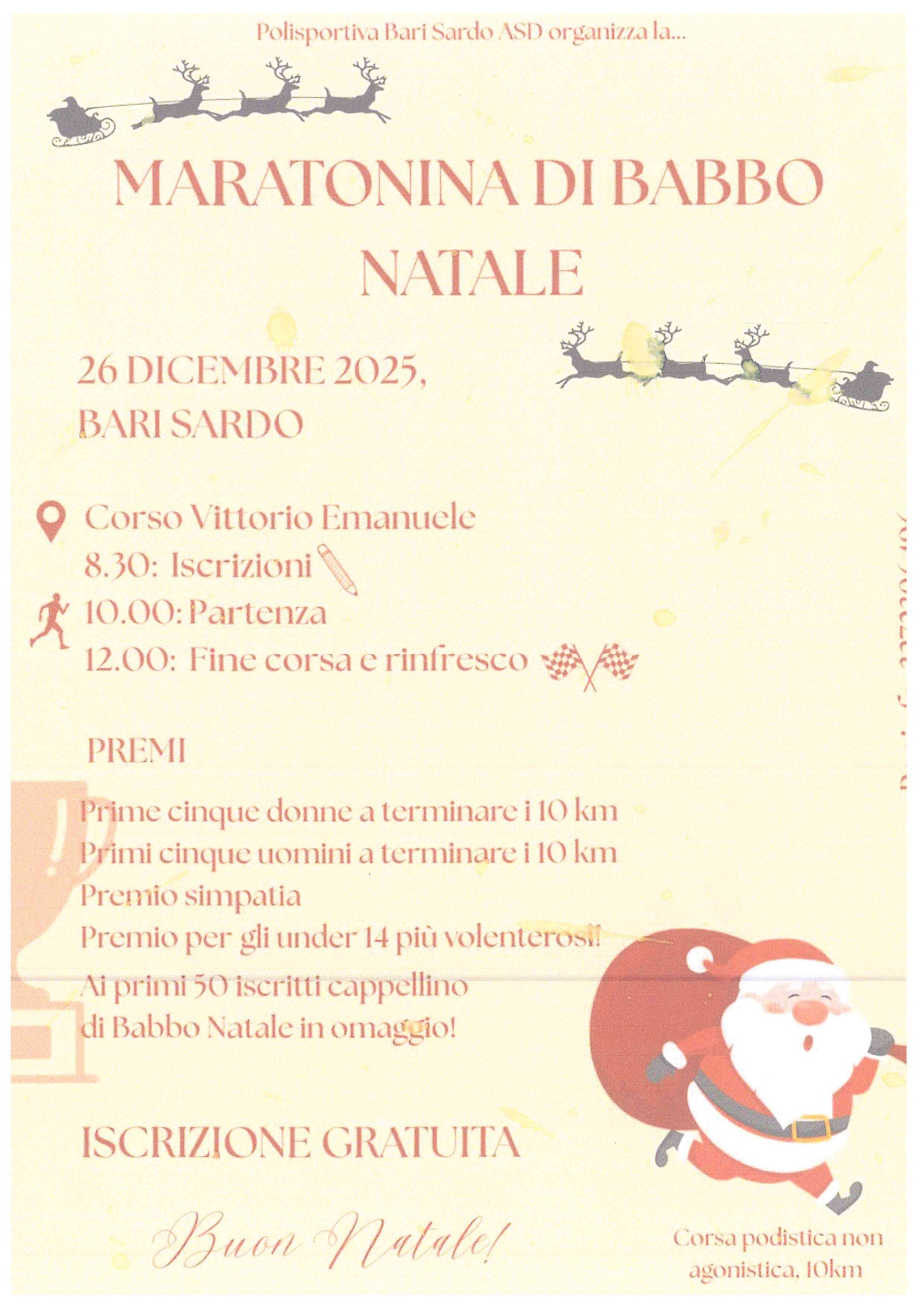 .L'ASD Polisportiva Bari Sardo con il patrocinio del Comune organizza per il 26 dicembre, lungo il Corso Vittorio Emanuele, la Maratonina di Natale.