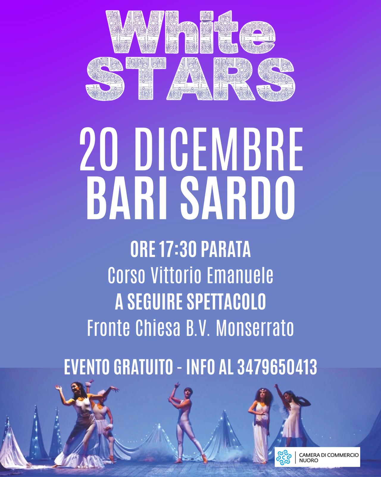 Sabato 20 Dicembre 2025, Bari Sardo ospiterà l'evento natalizio "White Stars - Parata Natalizia" una manifestazione, inserita nel circuito Natale nel Cuore della Sardegna promosso dalla Camera di Commercio, che porterà artisti luminosi, trampolieri, danzatrici aeree e giocolieri lungo tutto il Corso Vittorio Emanuele, per concludersi con un grande spettacolo nel piazzale della Chiesa della Beata Vergine del Monserrato